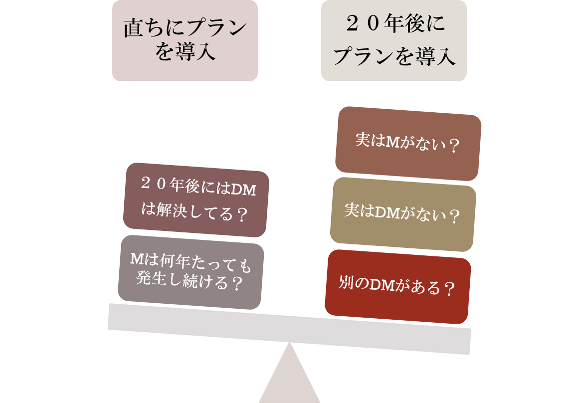 つまり、この三点のうちのどれか一つをゼロにすることができれば、プランを導入しなければならない理由、プランを導入してはいけない理由を崩すことができるということです。