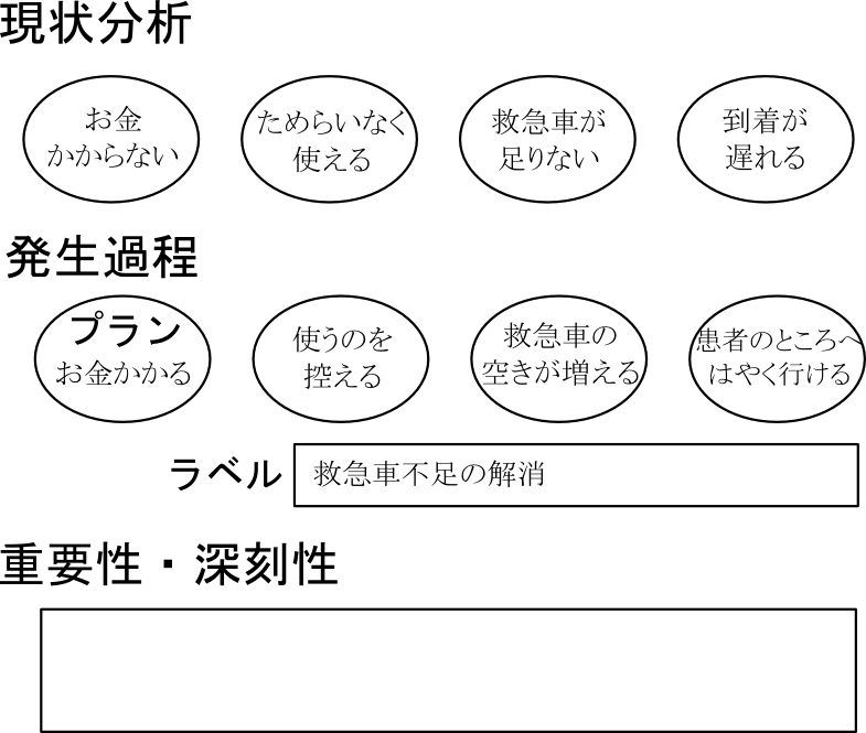 次に、現状がどんな状態かを考えていきます。「今はこうで、プラン後はこう違う」というように、発生過程と対応するよう表裏一体で考えるのがポイントです。