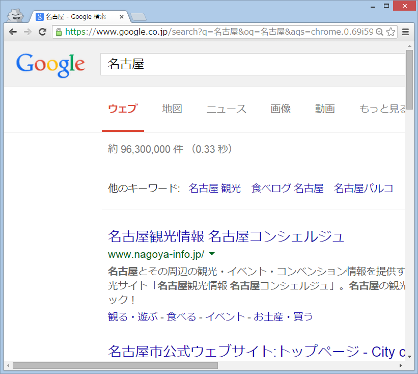 たとえば「名古屋」に関連する情報を探したいときには、以下のように入力エリアに「名古屋」と入力し、検索を実行することで、情報を探し出すことができます。